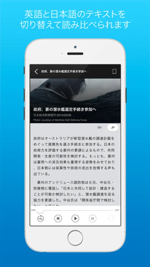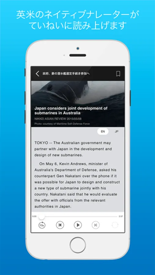 Delivering 5 featured articles every weekday morning — in both Japanese and English — straight from Nikkei’s top news sources to your iPhone. All articles are narrated in full by native English speakers from the United States and the United Kingdom. Supplement your listening practice with easy vocabulary lookup for words contained within each article. During your daily commute, get caught up on the latest news while brushing up your Business English.