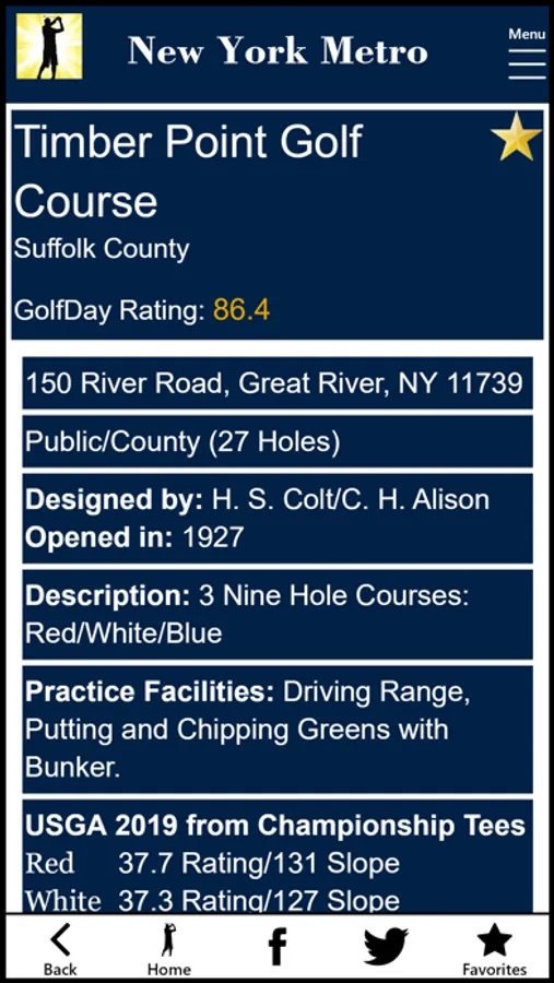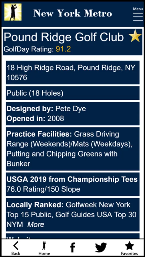 GolfDay NYM includes over 350 courses in the New York Metro area, with a GolfDay Rating and proximity search making it easy to find a great course near you or where you plan to be. Listings also include rates, booking links, course detail, golf league and junior golf information, mapping/directions and local weather. Don’t waste your valuable time at a Dog Track!
