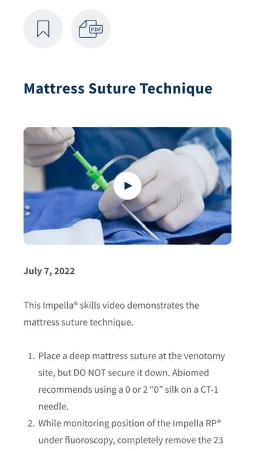 - Step-by-step videos on the setup and insertion of Impella heart pumps