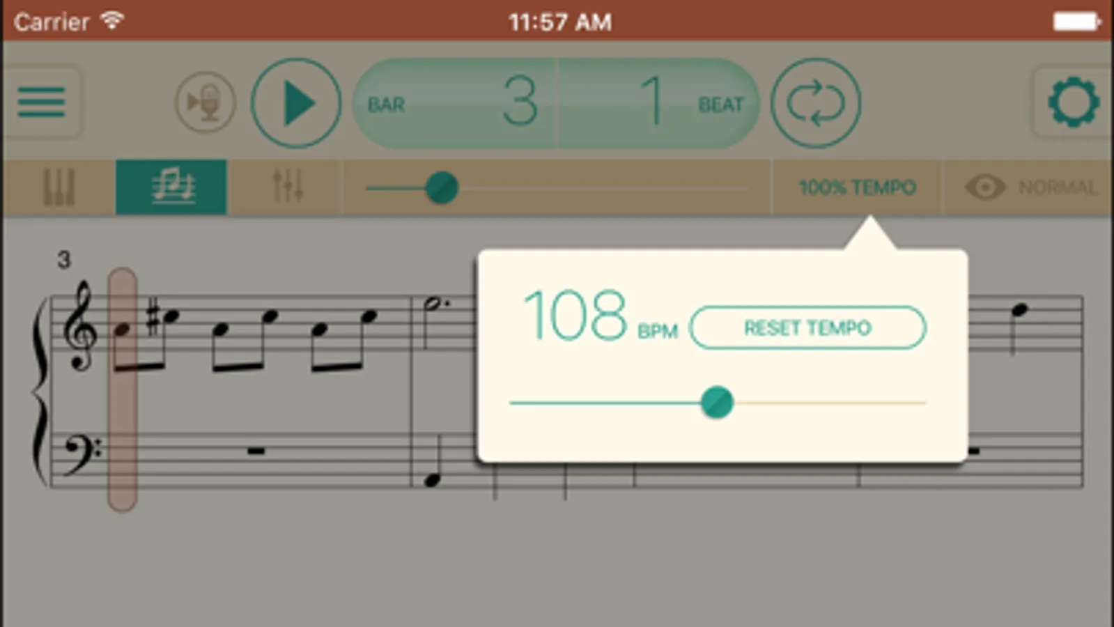 - Follow Mode intelligently adjusts to track your tempo and dynamics or waits for you to play the correct note