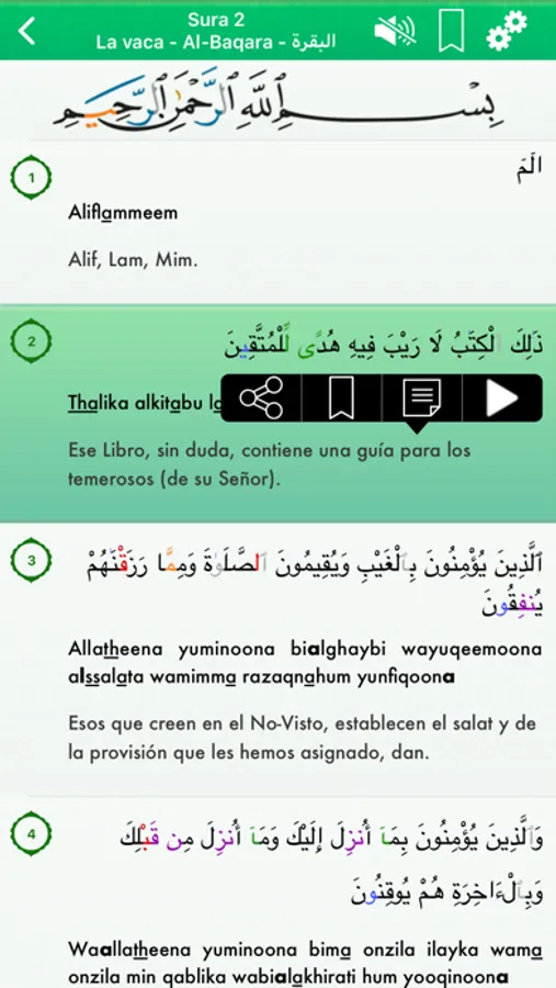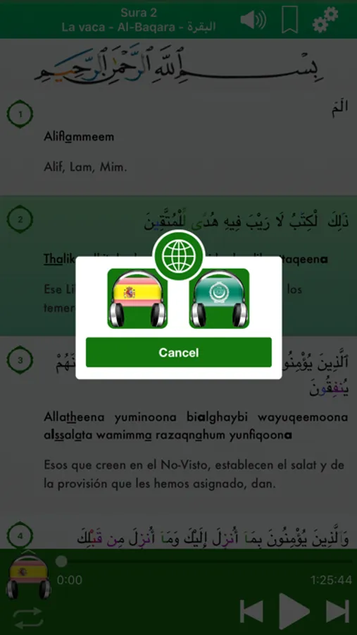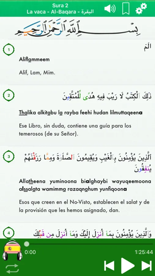 Esta aplicación te da la posibilidad de leer y escuchar todas las 114 suras.