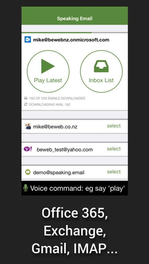Ideal for visually impaired users, driving, or anytime you'd like to check email hands free & eyes free.