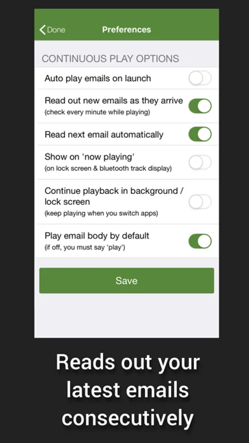 (Note for CarPlay users: see also our other app "Speaking Email CP")