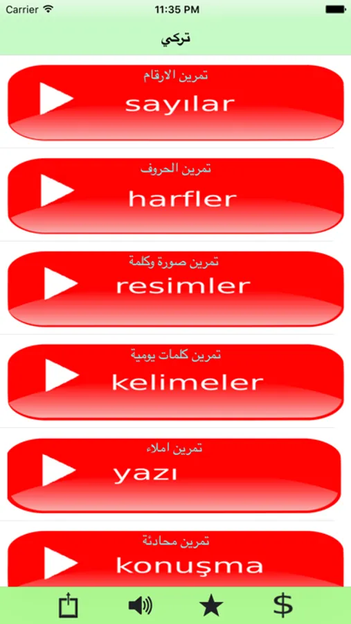 يمكنك تحويل اللغة بحيث يكون السؤال باللغة العربية او التركية - و يمكن تكرار اعادة سماع المحادثة الواحدة حتى يتسنى لكم التمييز بين الكلمات وتمت اضافة امكانية التحكم في سرعة الصوت حسب الرغبة!
