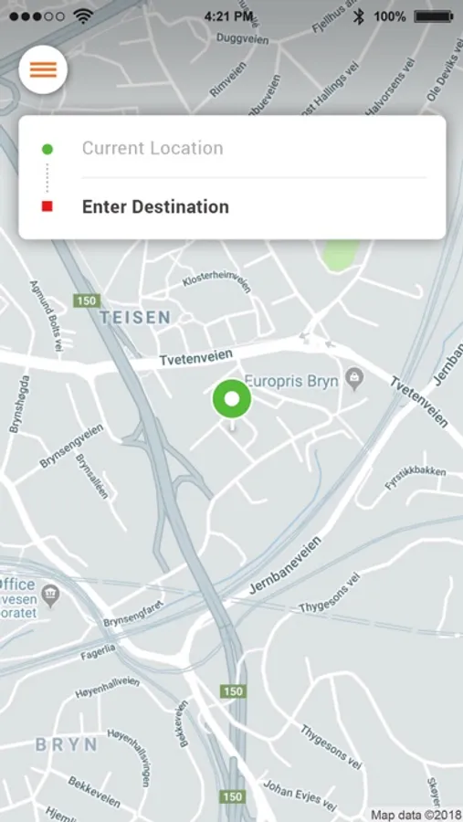 Appen plasserer deg automatisk på kartet, hvis du ikke ønsker å bruke denne adressen, kan du bevege kartet til ønsket posisjon vises, eller ved å skrive inn adressen selv.