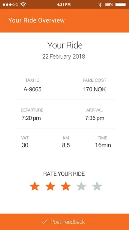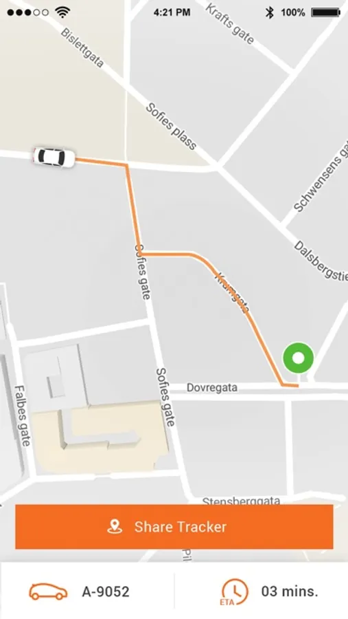 Når du bestiller drosjen vil du se hvilken drosje som har takket ja for å hente deg og hvor bilen befinner seg på kartet.