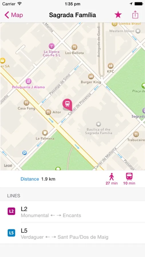 ROUTE PLANNER - instantly finds the fastest route and displays it on the map including transfer stations.