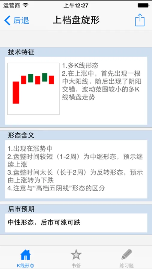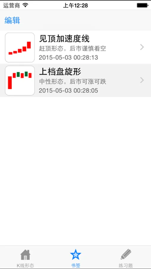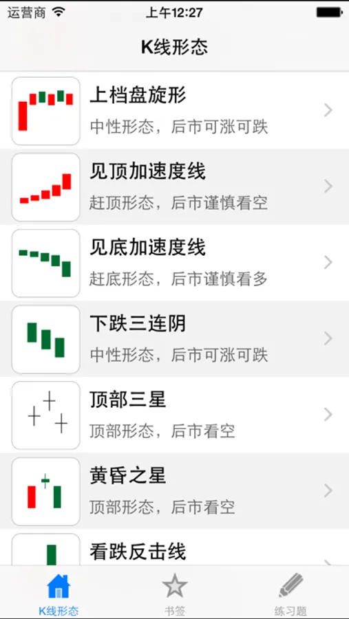 1、免费版本提供41种K线图经典形态