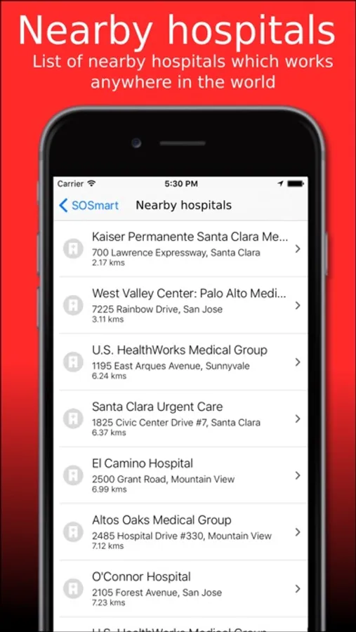 When in an emergency every second matters. That´s why we allow yo to check nearby hospitals with a single click, and even show you the route.