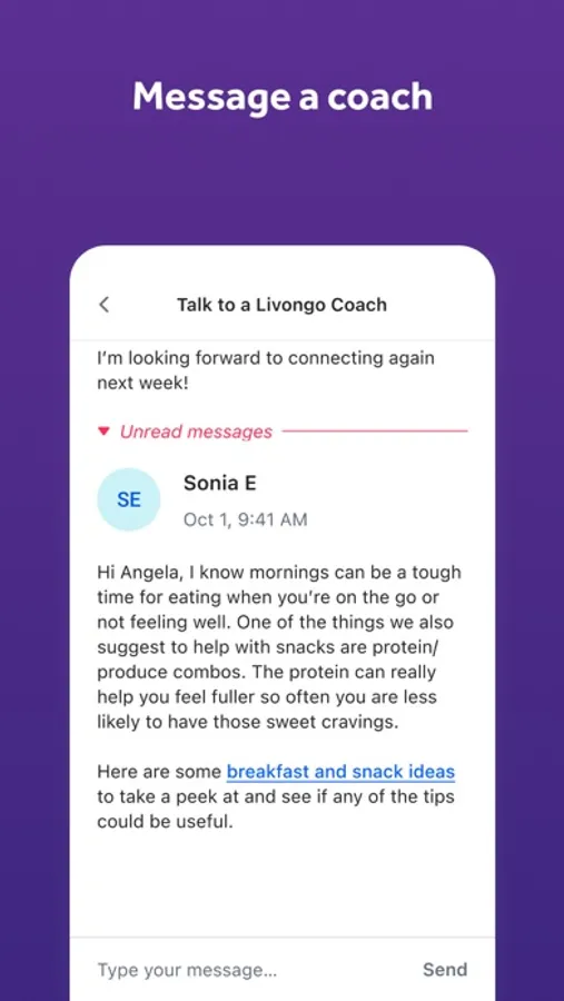 Reach out to our expert coaches anytime. They can help you with healthy eating, activity, stress, medications, and more.