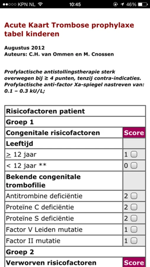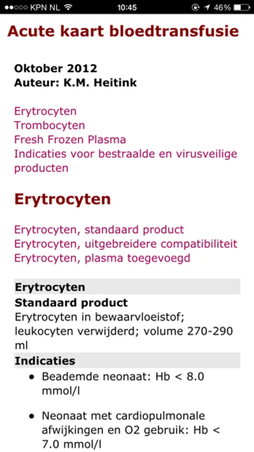 Tevens formules voor o.a. het toedienen van bloedtransfusie en het berekenen van de indicatie voor trombose-profylaxe.