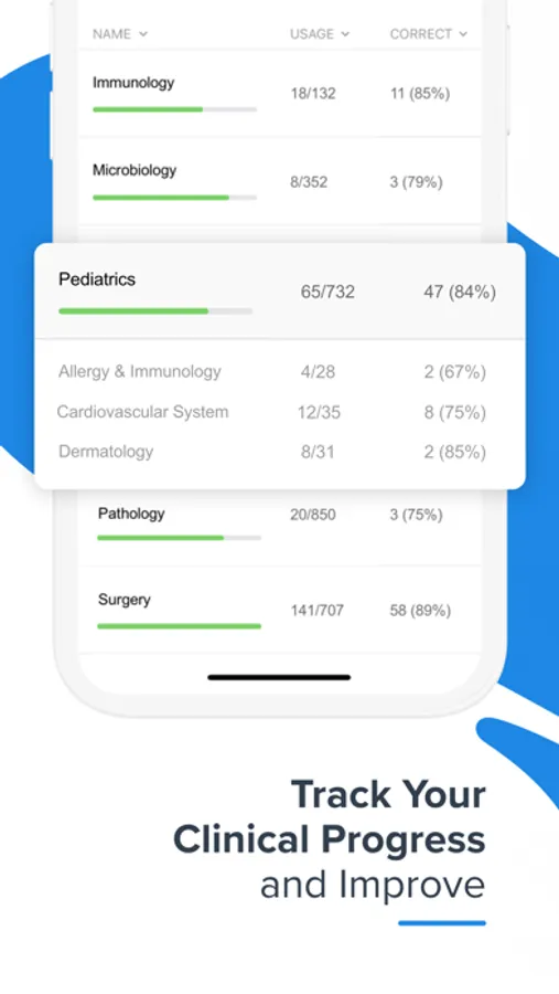 - Customizable content and practice tests that focus on specific clinical rotations or systems