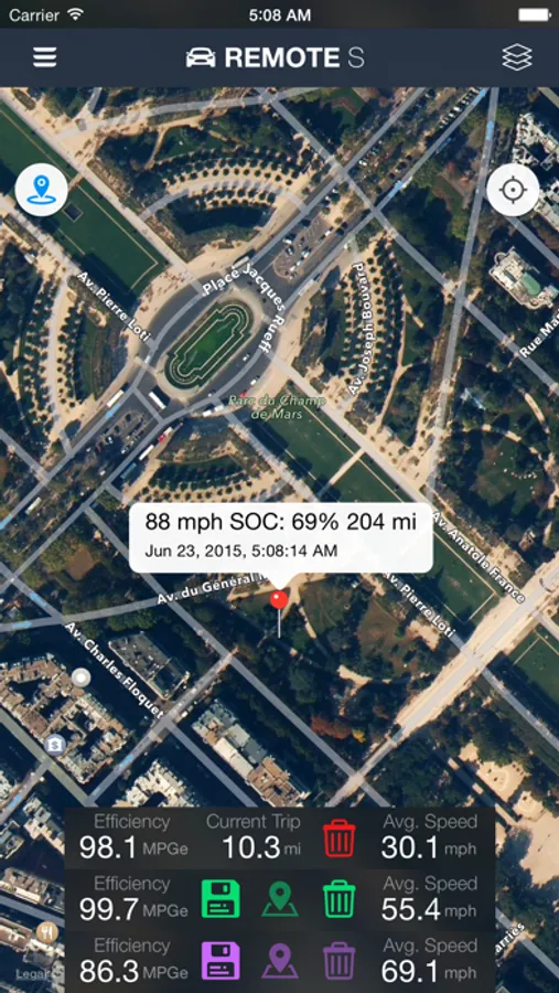 - Save trip routes to different save slots and compare the distance, kWh used, cost, and more for each route