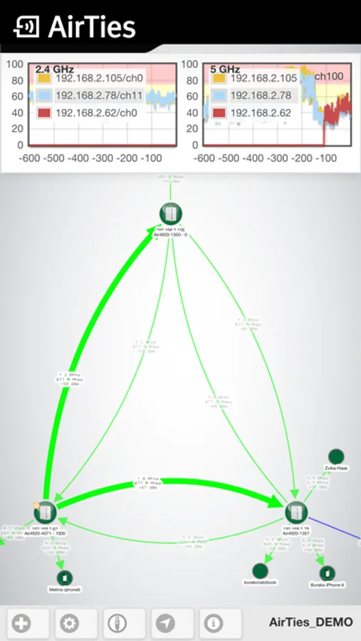 The AirTies Network Visualizer app allows you to monitor and manage AirTies Mesh Network topologies. With the app, you can access the home network, see the mesh health through various node and client color codings.