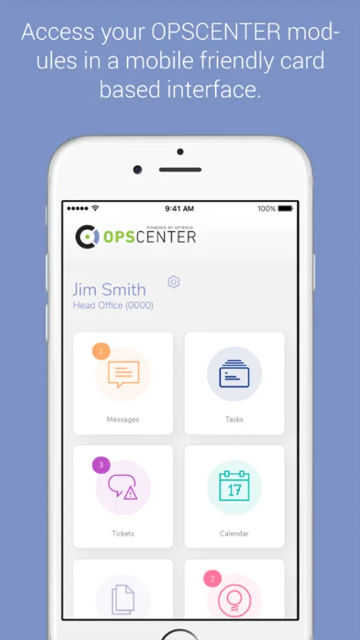 The OPSCENTER mobile app allows users of the Opterus OPSCENTER solution to access their account in order to receive and reply to messages, complete tasks, track issues, view documents and knowledge base, and complete tests and audits. Configurable badge counts and push notifications also allow users to be alerted when something new or updated has been sent to them or their store.