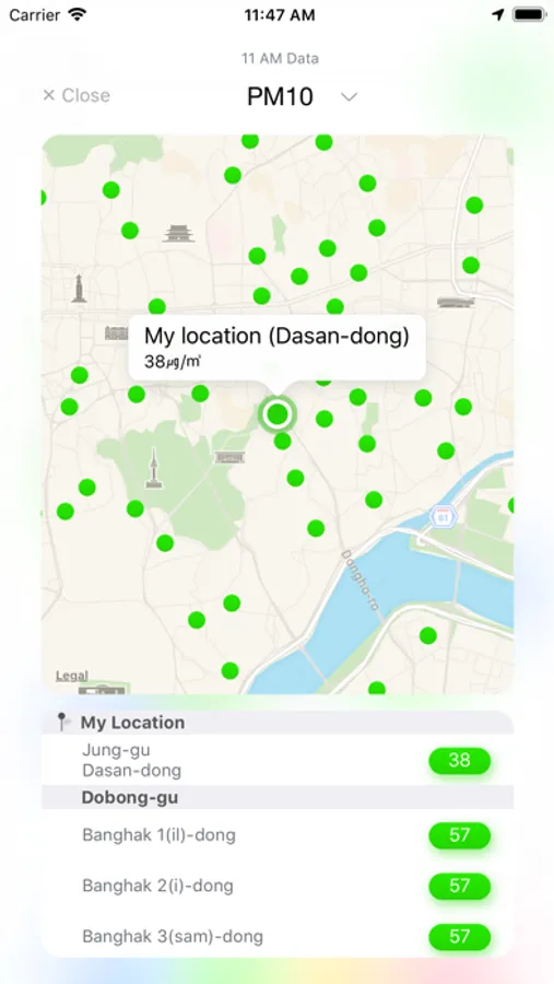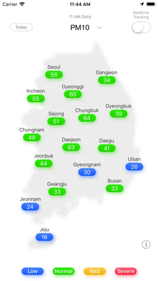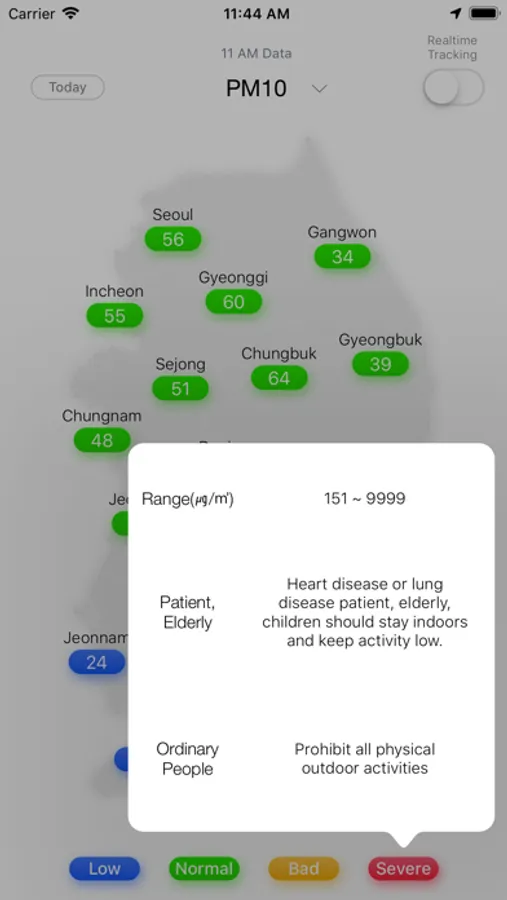 This app provides national PM10 / PM2.5 / O3 pollution map in South Korea.