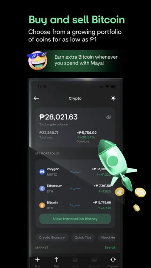 You’ve got plenty of ways to explore your money's potential. Buy, sell, and trade Bitcoin, Ethereum, and other popular cryptocurrencies for as low as P1 or try Maya Funds and invest in world-famous companies for just P50.​