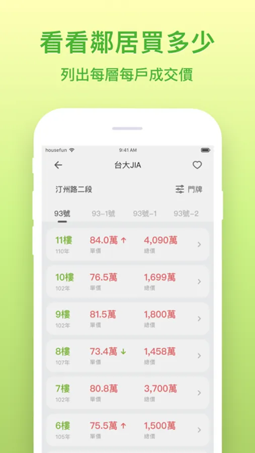 1.首創鄰居房價表--門牌(戶別) X 樓層,看看鄰居買多少?
