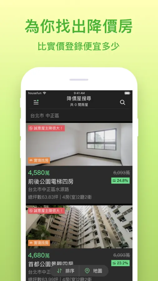 1.標出「屋主降很大」與「低於實價登錄」的划算方屋