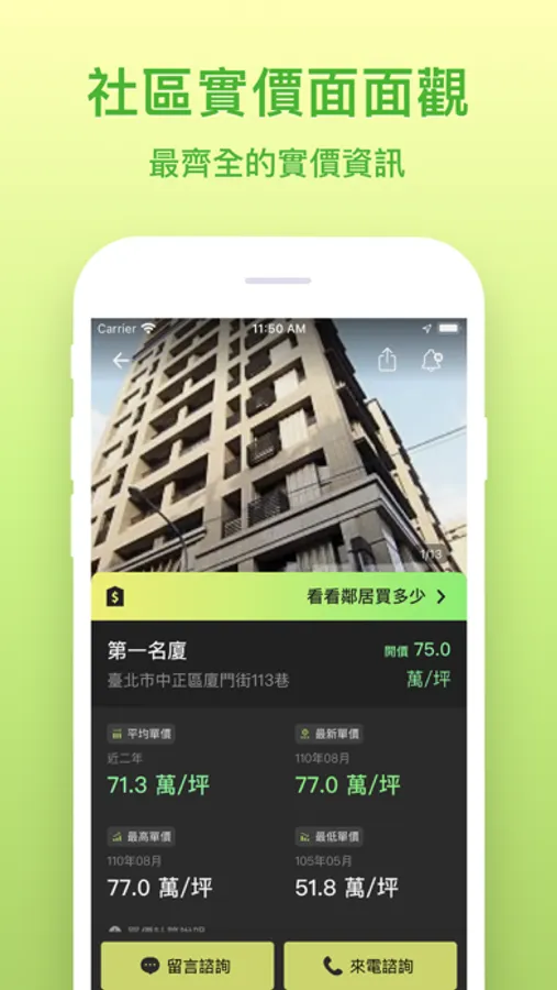 3.社區實價:社區x時間軸,為您整理現在與過去的社區成交價