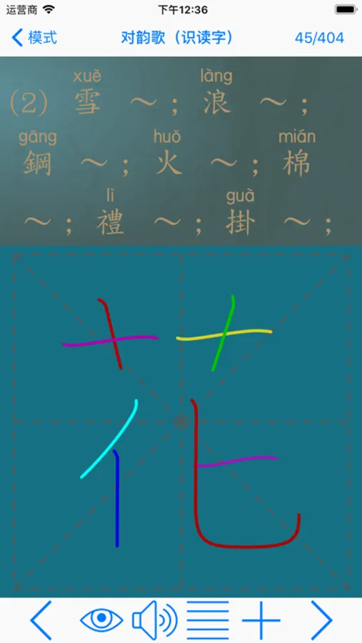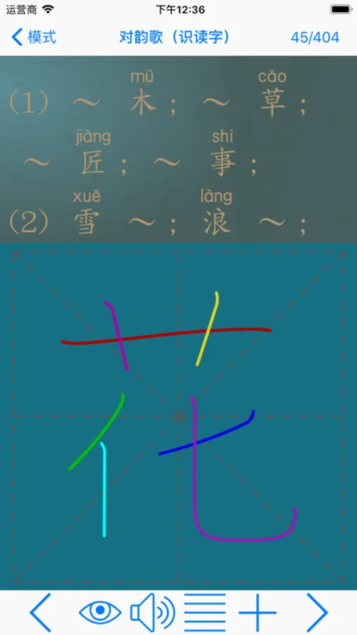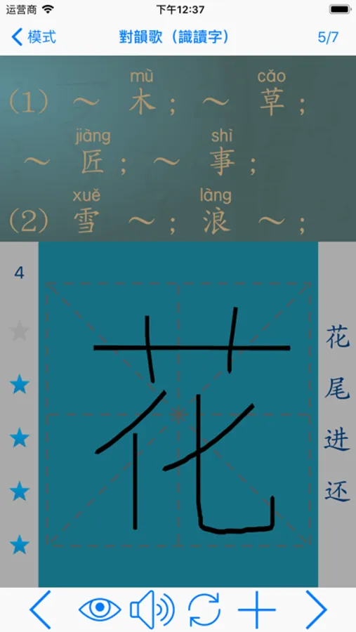 “九、为、方、入、门、绿“等简单常用的汉字,写起来却容易笔顺错误。从开始就养成正确的书写习惯非常重要,本应用严格遵守国家语言文字工作委员会和国家新闻出版署发布的《现代汉语通用字表》的字形结构和笔顺,让学生快速正确掌握汉语的听说读写。