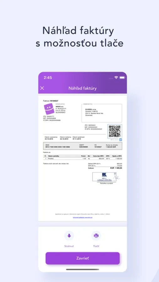 - zobraziť náhľad faktúry, vrátane možnosti tlače a zdieľania rôznymi spôsobmi,