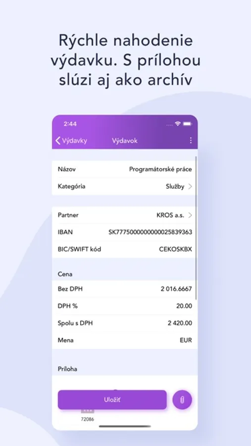 - pridať prílohu k výdavkom – priamo v mobile tak máte archív dokumentov.