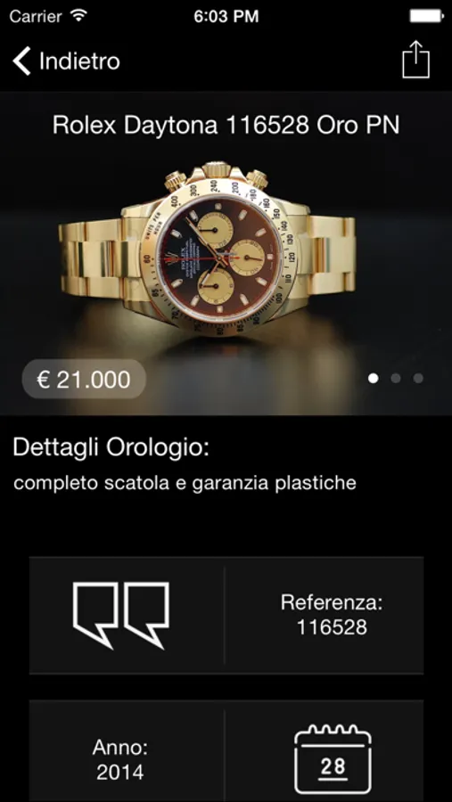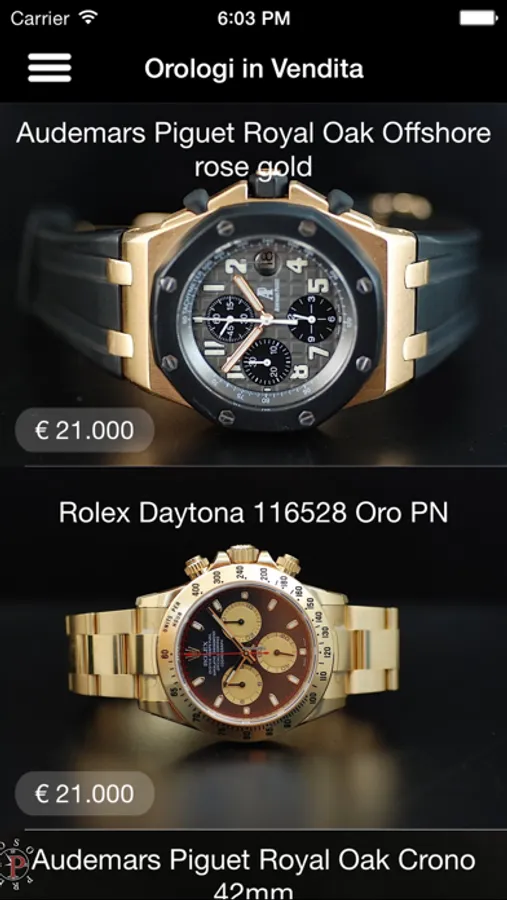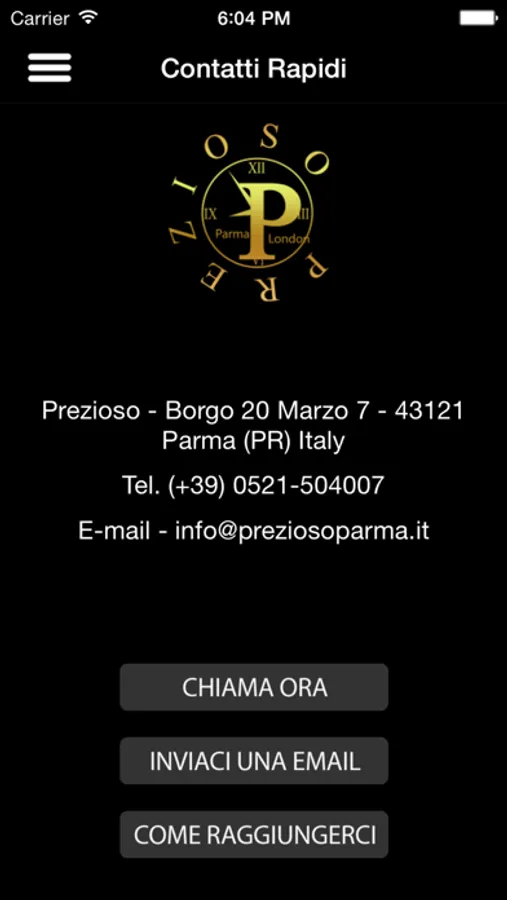 Questa App permette di conoscere la disponibilità e i dettagli degli orologi disponibili presso la nostra gioielleria di Parma (Italy)