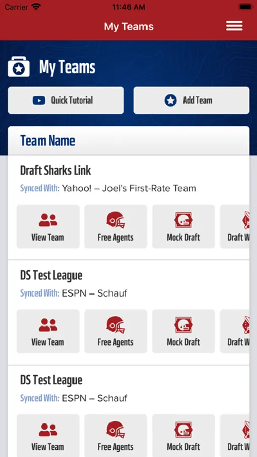 --Free Agent Finder: This might be the sickest tool of any FF App. Our free agent finder synchs to all the teams in your league. Then when a free agent appears that is ranked higher than someone on your team – bang, the tool will show you who to pick up. No searching endlessly through your league’s free agent list to find a guy. We'll even push notify suggestions to you during your waiver period.