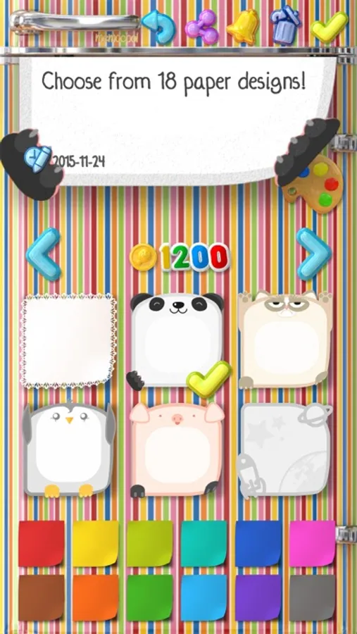 ◆ 24 types of paper (regular, notebook, parchment, animals) , 36 colors and 4 special effects for your notes.