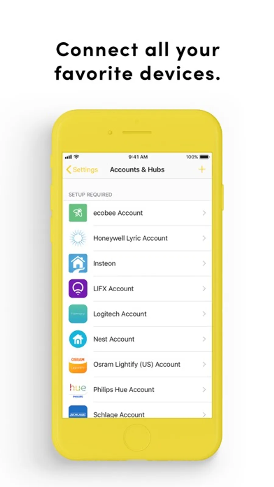 Yonomi plays with all your favorite smart home devices! See the list of all the devices that Yonomi currently supports: www.yonomi.co/supported-devices/
