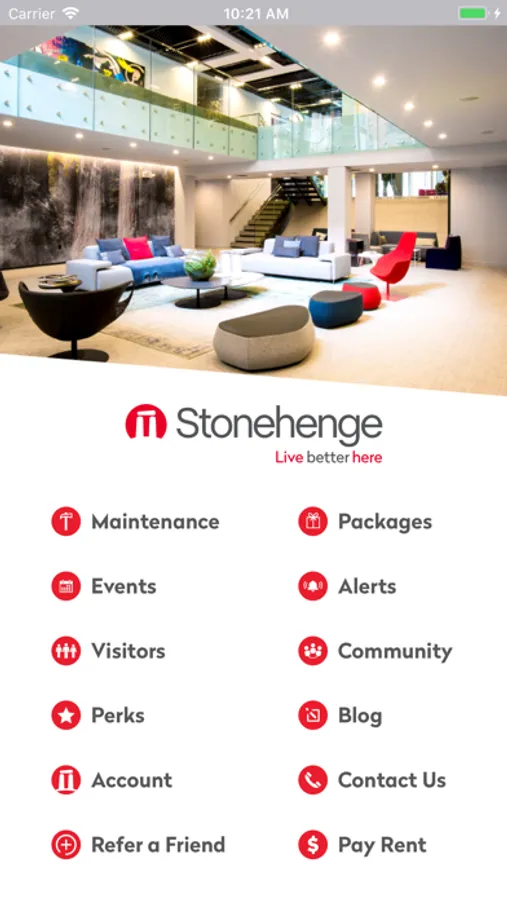 The Stonehenge Mobile App provides the tenants in Stonehenge’s buildings the ability to perform common functions from their mobile device.