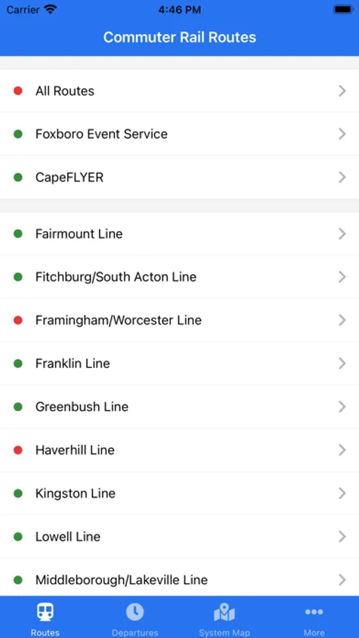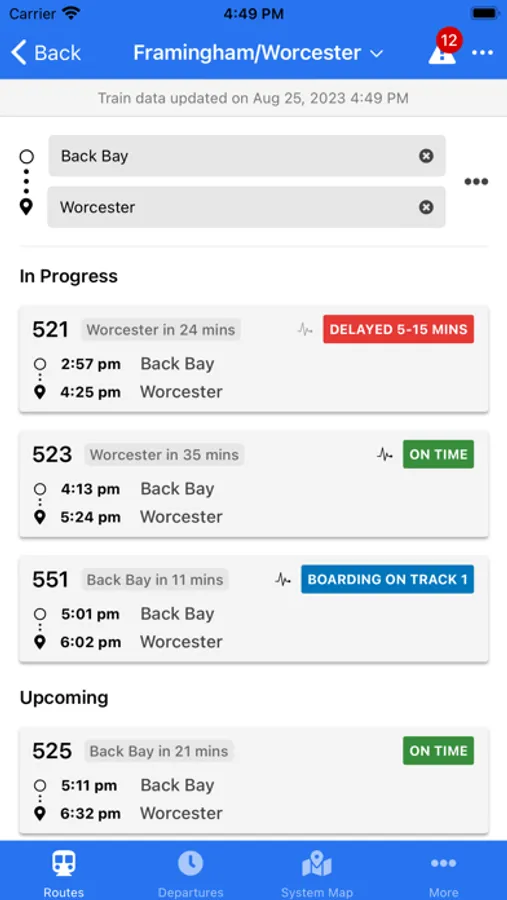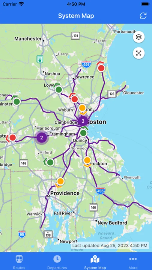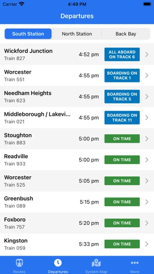 MBTA Rail provides **experienced** Boston commuters with as much information as possible about the location and status of their trains. This app is designed for seasoned commuters who are already familiar with their line's schedule.