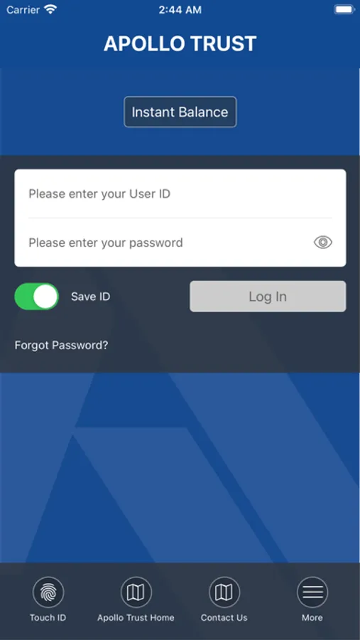 Apollo Trust Company allows you to securely access your accounts from your mobile device. To get started, just enroll in the Apollo Trust Online Banking program by visiting www.apollotrust.com . You can use the same access ID and Password in order to start using the online app.