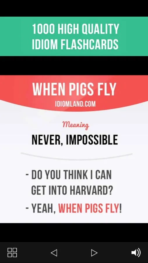 Learn English idioms in a fun and easy way via 1000 flashcards with pictures and pronunciation.