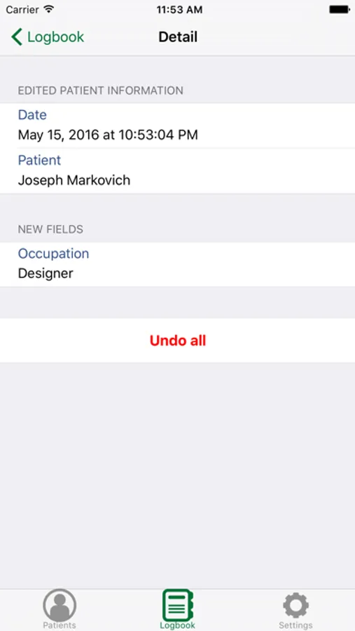 - Use the logbook to see the actions you have performed, and undo any changes in the information.