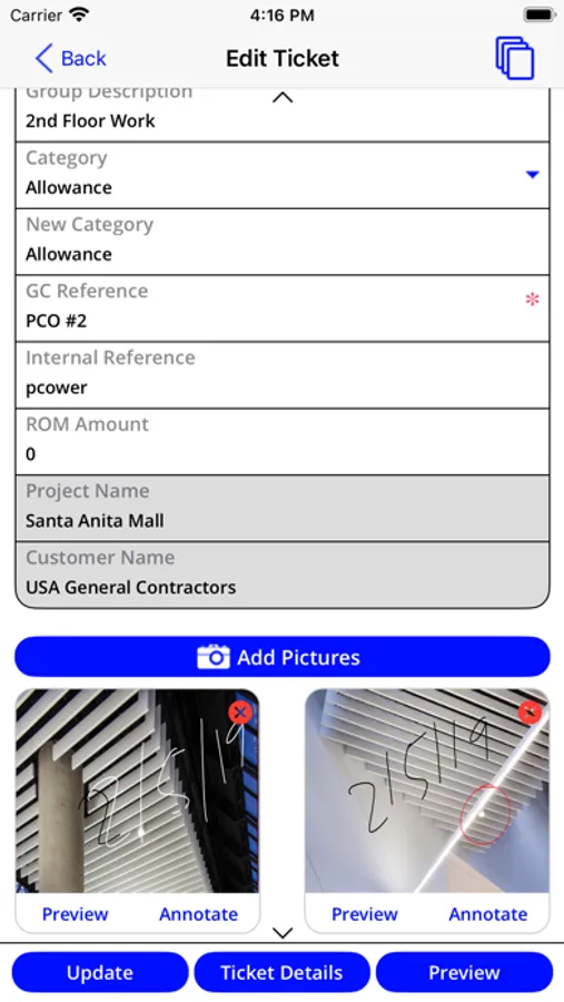 PeerAssist PROJECT MANAGEMENT subscribers can Track T&M on the mobile app, which is directly tied to the office’s ability to price and send a Change Order Request to the customer. Employee names, trade rates and materials are set up for the company and/or project so that the office can see real-time costs as they accumulate and save time spent pricing extra work.