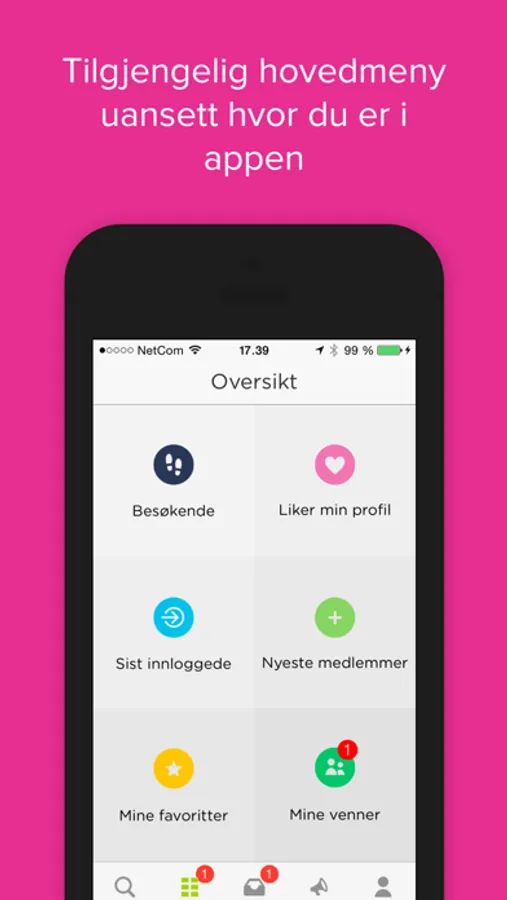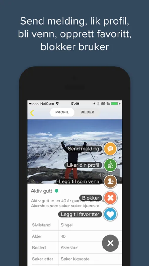 - Send og motta «Jeg liker din profil»