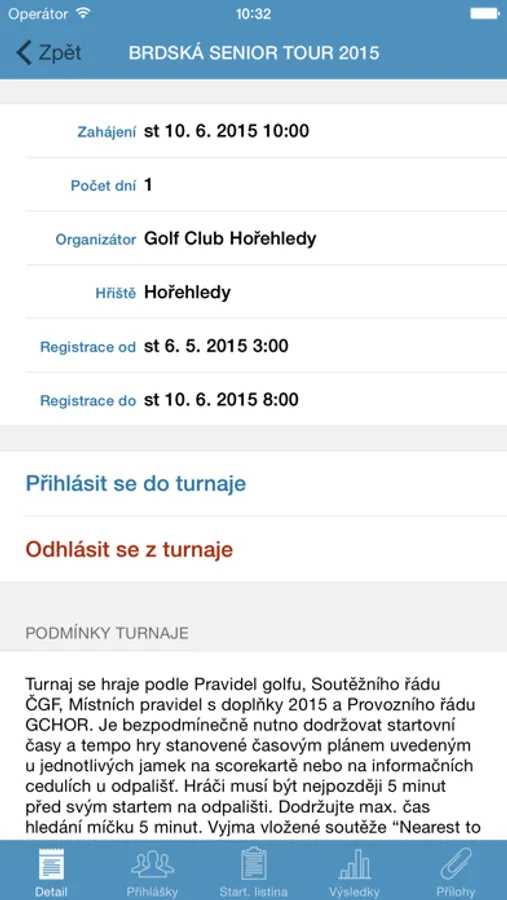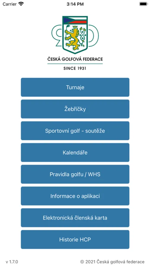 Mobilní aplikace pro každého golfistu! Základem je komfortní a rychlý přístup ke kompletní turnajové agendě na serveru ČGF. Pro hráče turnajů pod logem ČGF jsou k dispozici kalendáře akcí ČGF, všechny žebříčky i přehledné menu individuálních tour a soutěží družstev. Jedním kliknutím si můžete prolistovat Pravidla golfu i Pravidla pro hendikepy (WHS). V ověřené části aplikace je hráčům k dispozici Elektronická členská karta a HCP historie dle metodiky WHS.