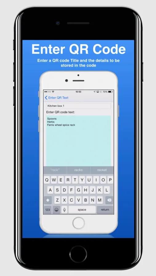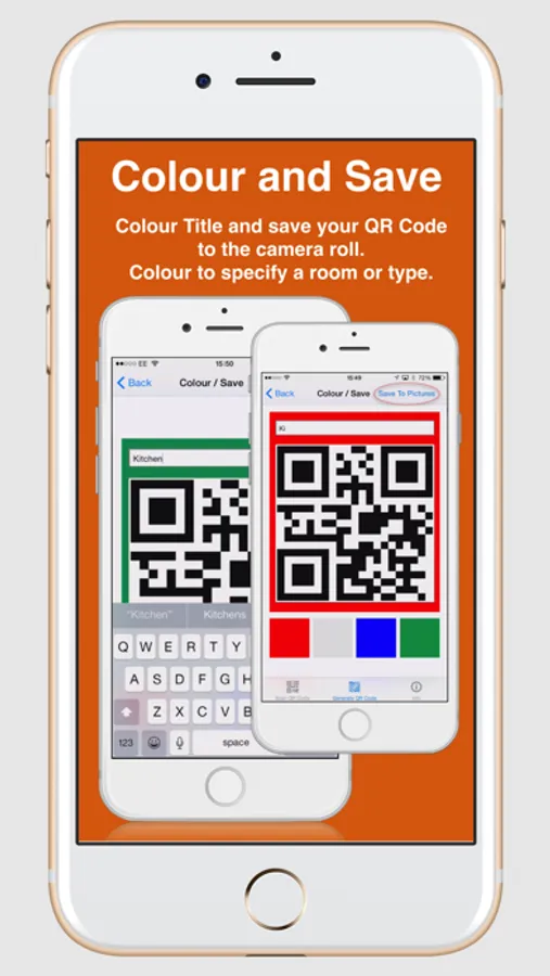 The QREncode App allows users to save there QR codes to the camera roll and print them out, you can set a number of coloured backgrounds, to visually separate items you apply labels too.