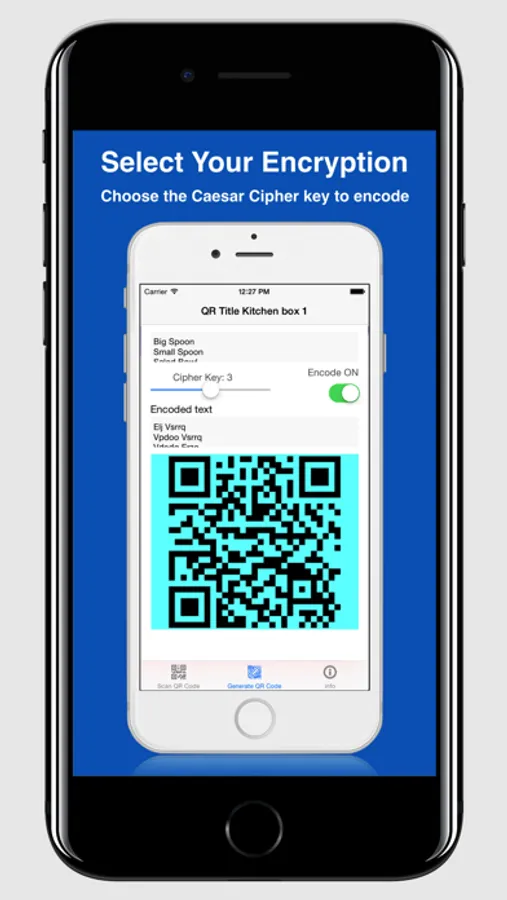 It includes basic Ceasar cipher* encryption (also known as shift cipher) to help prevent the “casual” user from reading the text in a QR code label.