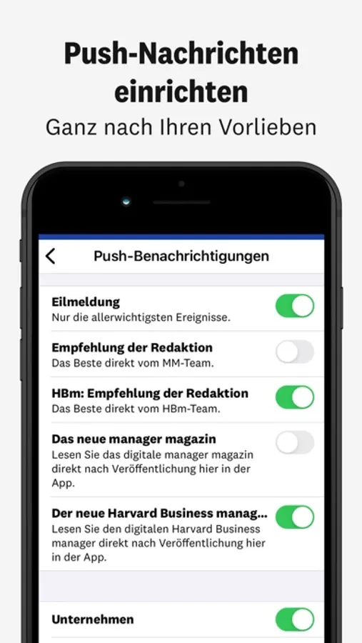 • Push-Benachrichtigungen: Sie können jetzt noch individueller einstellen, welche Benachrichtigungen Sie erhalten möchten. Eilmeldungen, tägliche Briefings, Empfehlungen der Redaktion oder Wissenswertes zu Ihren Interessengebieten aus den Bereichen Unternehmen, Finanzen, Politik und Lifestyle. Verpassen Sie dank der Push-Mitteilung auch keine Ausgabe unserer Magazine, die Sie schon am Erscheinungstag digital lesen können.