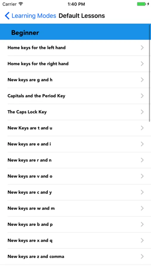 Talking TyperTM for iOS devices comes with 35 built-in lessons at levels 1-10. Teachers and parents can create new lessons, edit lessons, and assign lessons to individual students or groups. Speed, accuracy, and typing level can also be set for individual students or groups. The app saves the results of each drill allowing students, teachers, and parents to monitor improvement.