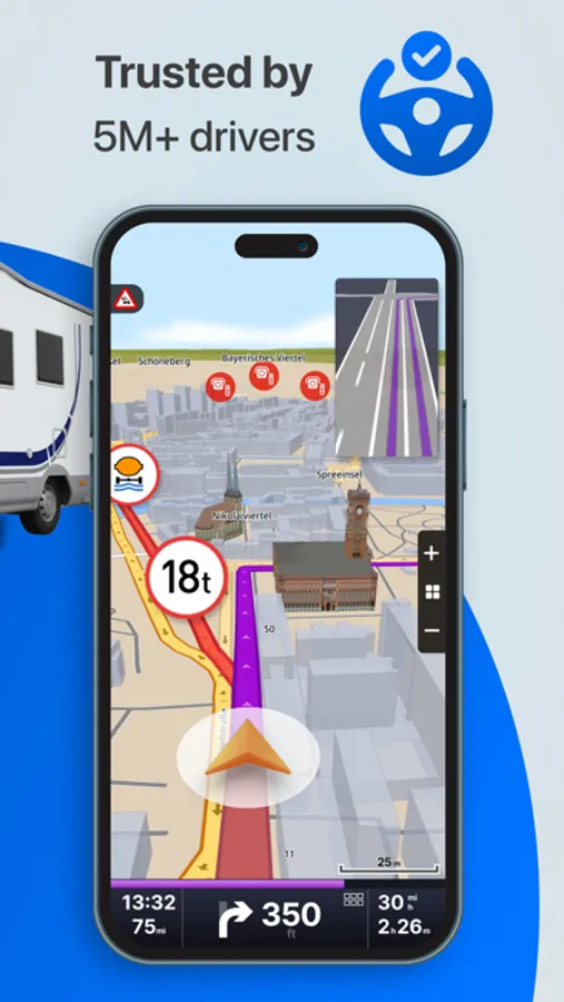 High-quality GPS navigation designed for professional drivers & their large vehicles. Trusted by 5+ million drivers & many of the world's leading delivery fleets. Smart route planning and navigation, 3D offline maps, realtime traffic and precise ETA, speed cameras warnings and an easy-to-use interface provide an effective sat nav experience.