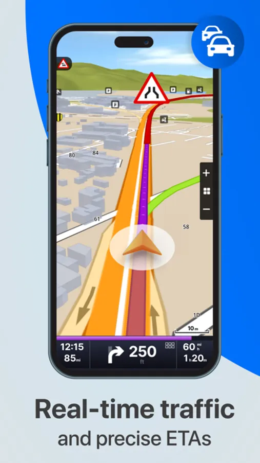 Add Realtime traffic to avoid delays on the road, have precise ETA information, and deliver on time. Speed cameras warn you when a mobile or fixed speed cameras are on your route. Head-Up display (HUD) projects optimized navigation instructions onto the car's windshield.