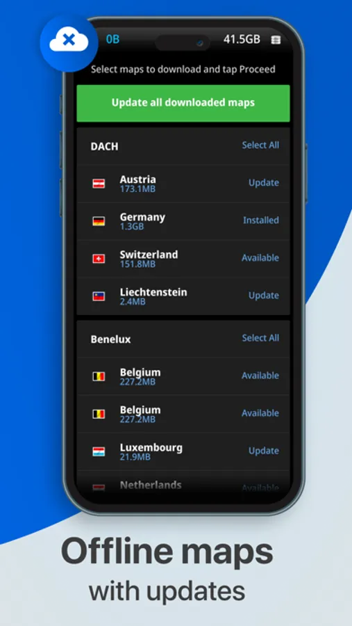 Never get lost waiting for a signal again. Offline maps guarantee you'll always find anything you need – even without an internet connection. They come in handy when driving abroad or in areas with poor signal coverage. We update the map data multiple times per year.