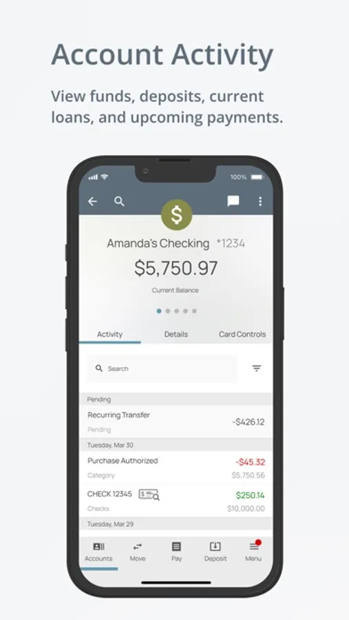 • Review transaction history, search for payments or deposits