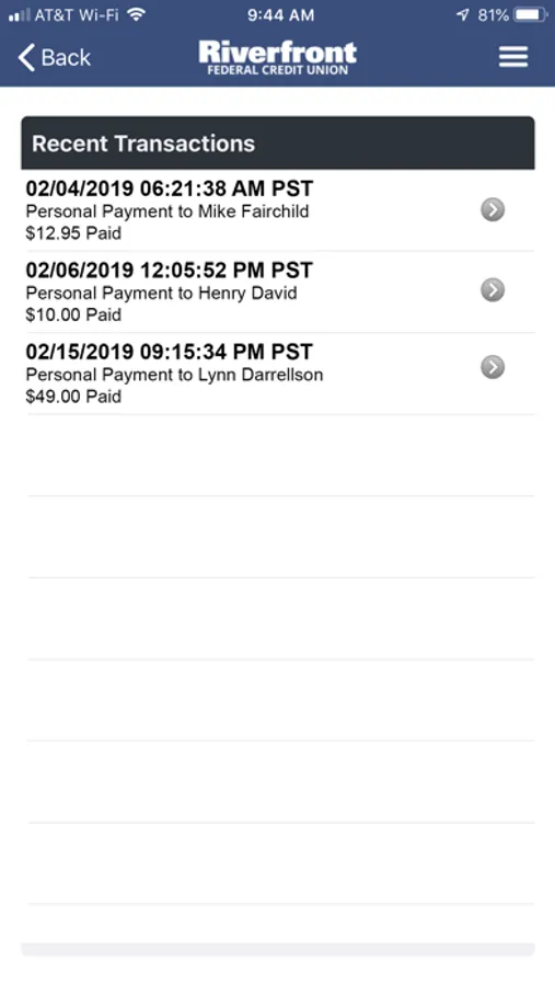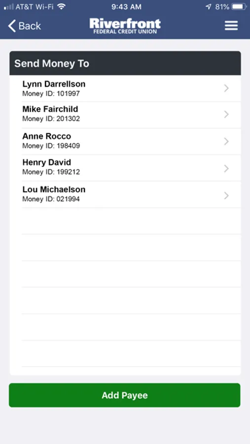 Riverfront PAY Mobile App - The new person-to-person payment service from Riverfront Federal Credit Union. It’s the safe, easy and convenient way to send money to friends and family using your mobile device.