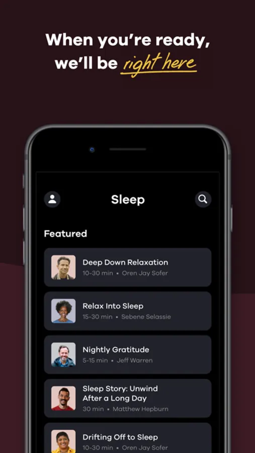 - A sleep section filled with relaxing meditations that make it easy to fall (and stay) asleep.