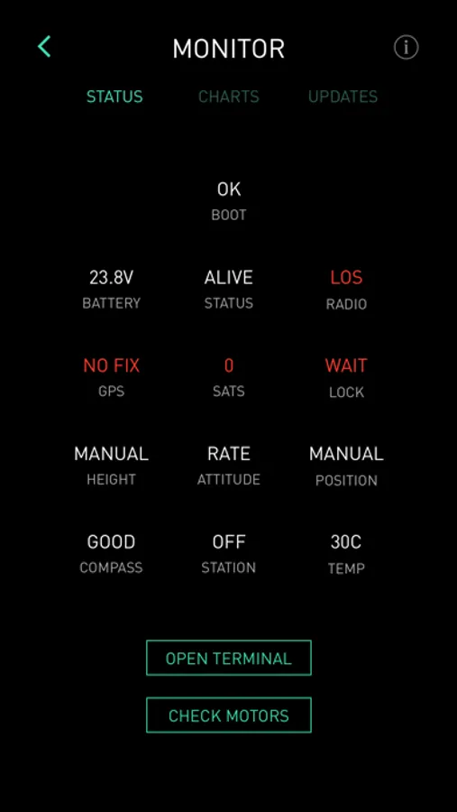 View the status of your ALTA in flight, examine real-time charting of numerous ALTA sensors and flight parameters, or check for firmware updates. MONITOR helps you make sure ALTA is performing at its best.